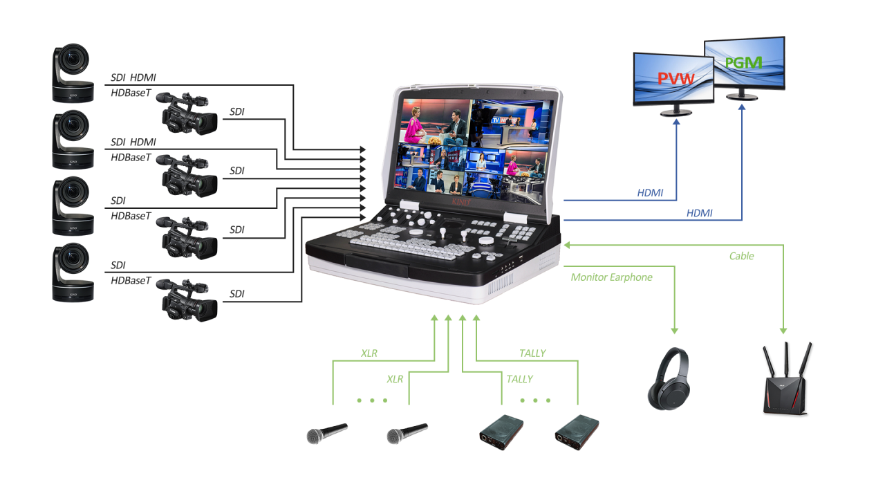 1. Video input: SDI×8, HDMI(4K30p)×4, output: SDI×2, HDMI×2;