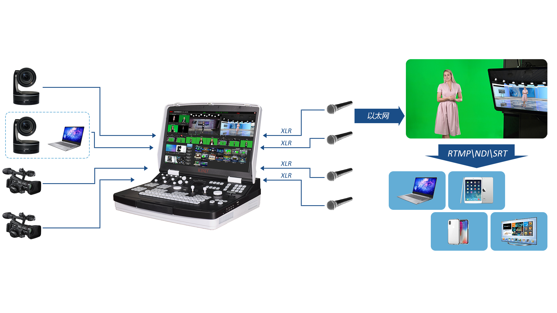 2. Video output: PGM output HDMI ×1,NDI ×1,SRT×1;