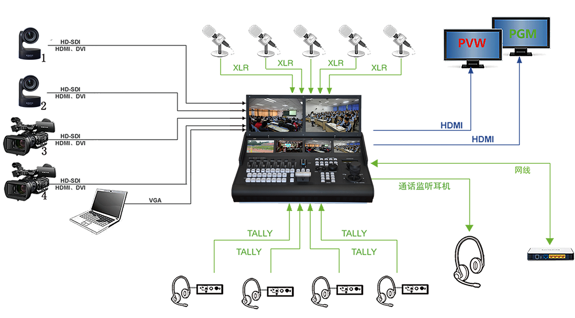 | Video output | PGM output,HDMI×2,SDI×1 |