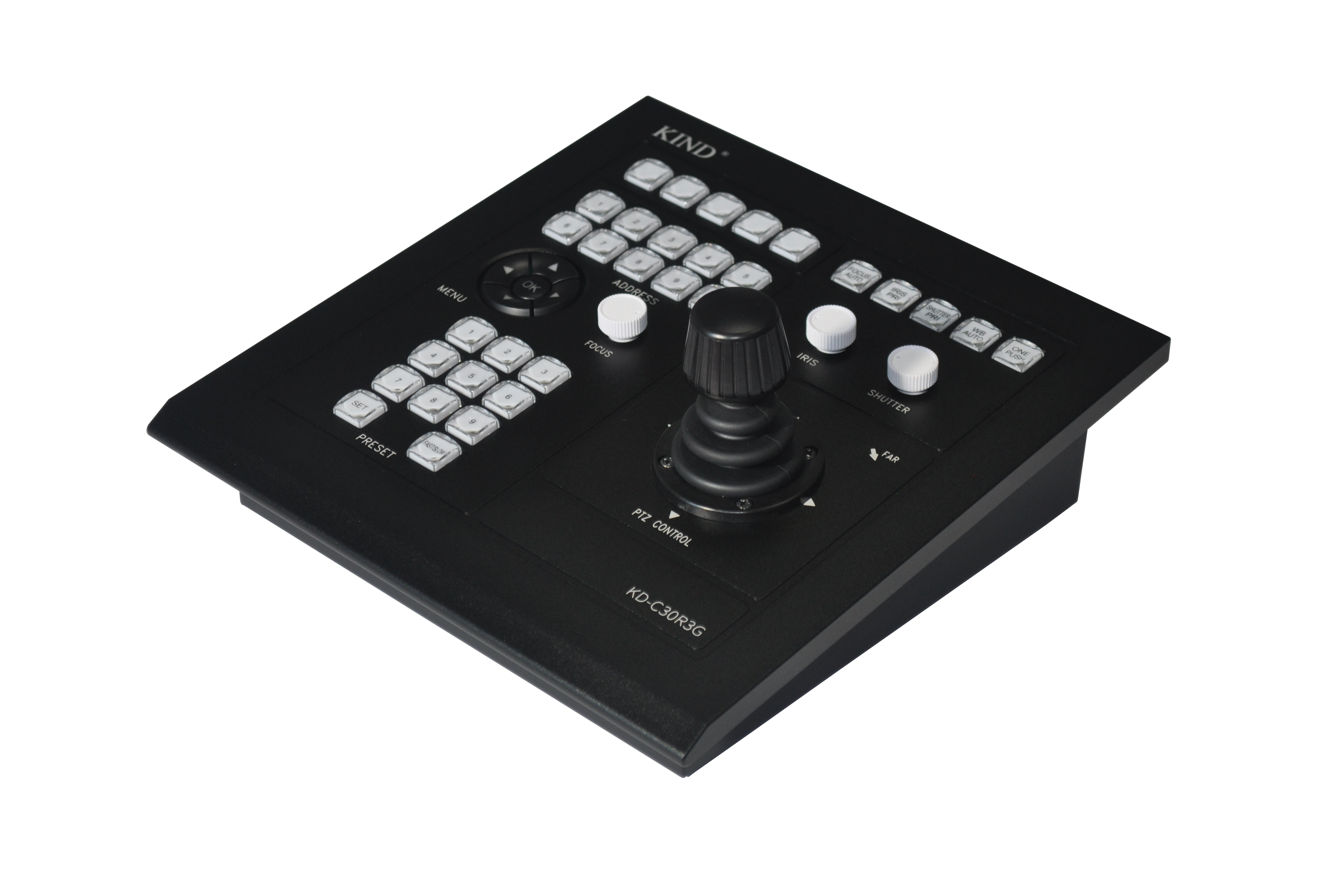 Joystick: broadcast-grade imported 3-axis high-precision potentiometer, voltage range: DC12V; power supply mode: USB-C; joystick dimension: three-dimensional joystick; the number of synchronization axes: three-axis synchronization; used to control the camera’s push, pull, shake, pitch, tilt;